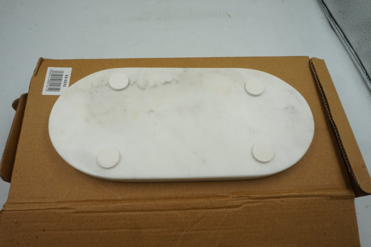 white marble oval bathroom tray