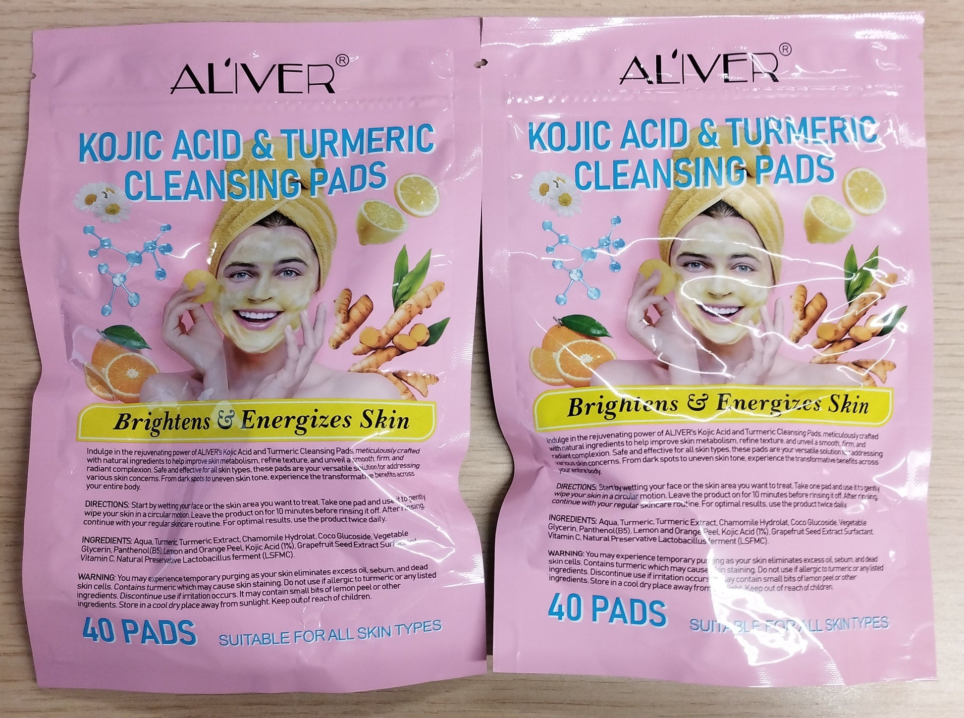 Aliver Turmeric Cleansing Pads for Dark Spots, Kojic Acid Exfoliating & Cleansing Pad-2x40pk