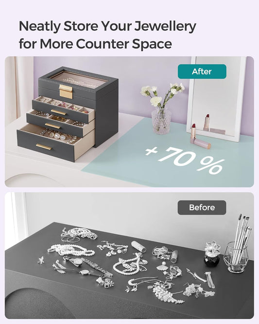 SONGMICS Jewellery Box with Glass Lid, 4-Layer Jewellery Storage Organiser with 3 Drawers
