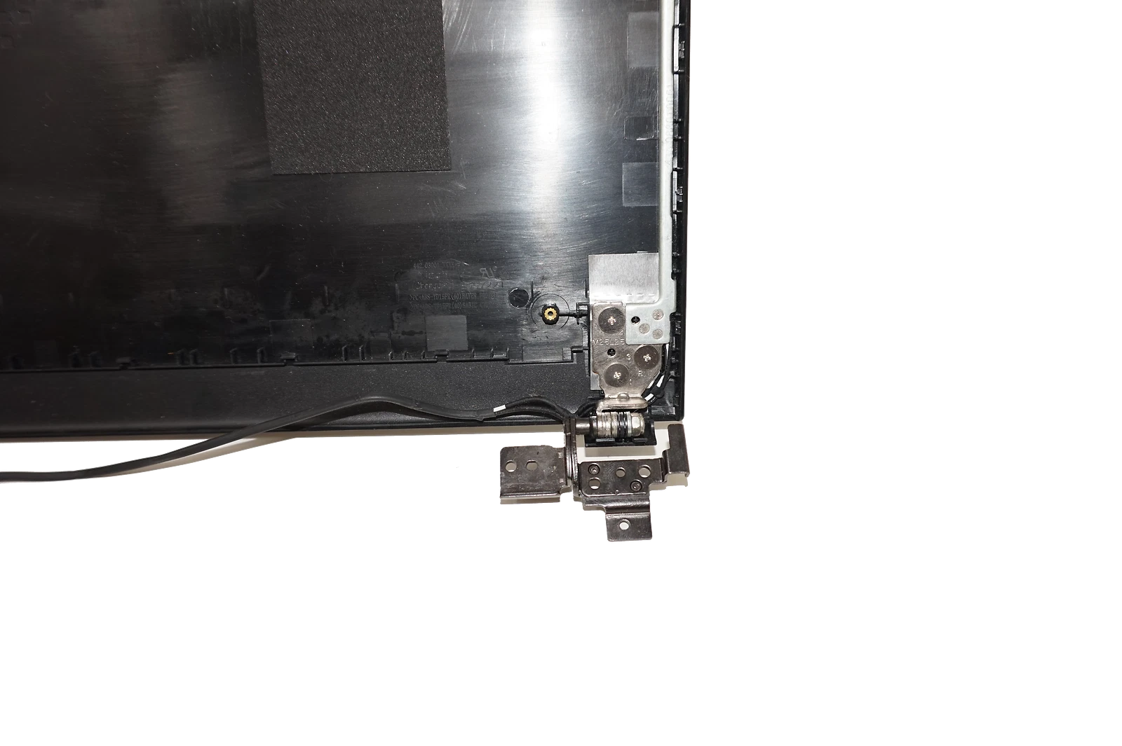This lid was removed from a Dell Inspiron 3558 Laptop. Included is the lid itself, the bezel, one hinge (the side that the wifi antenna is on), a wifi antenna and the webcam (just the module, no cables attached)