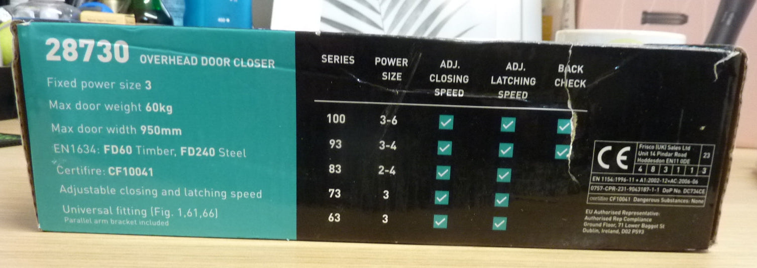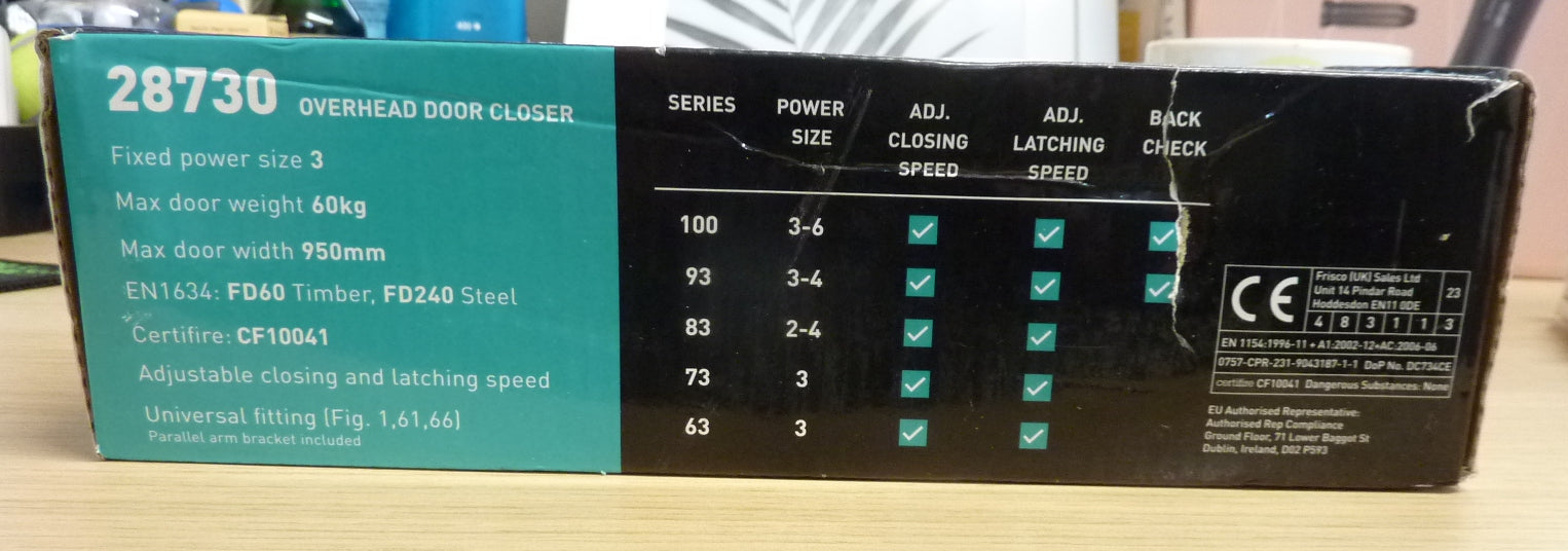 Our budget closer has been tested to BS EN1154 standard and successfully passed the test, allowing it to be used on 1 Hour Fire Rated doors. It is an ideal closer for small offices and domestic fire doors where cost is an issue.
