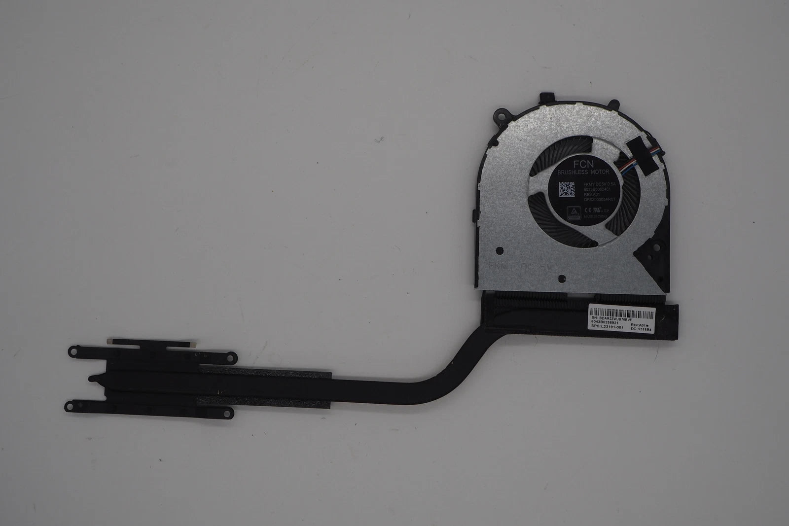 This fan & heatsink came from a HP 14-CMOXXX laptop with a Ryzen 3 2200U processor, and was tested before removal.