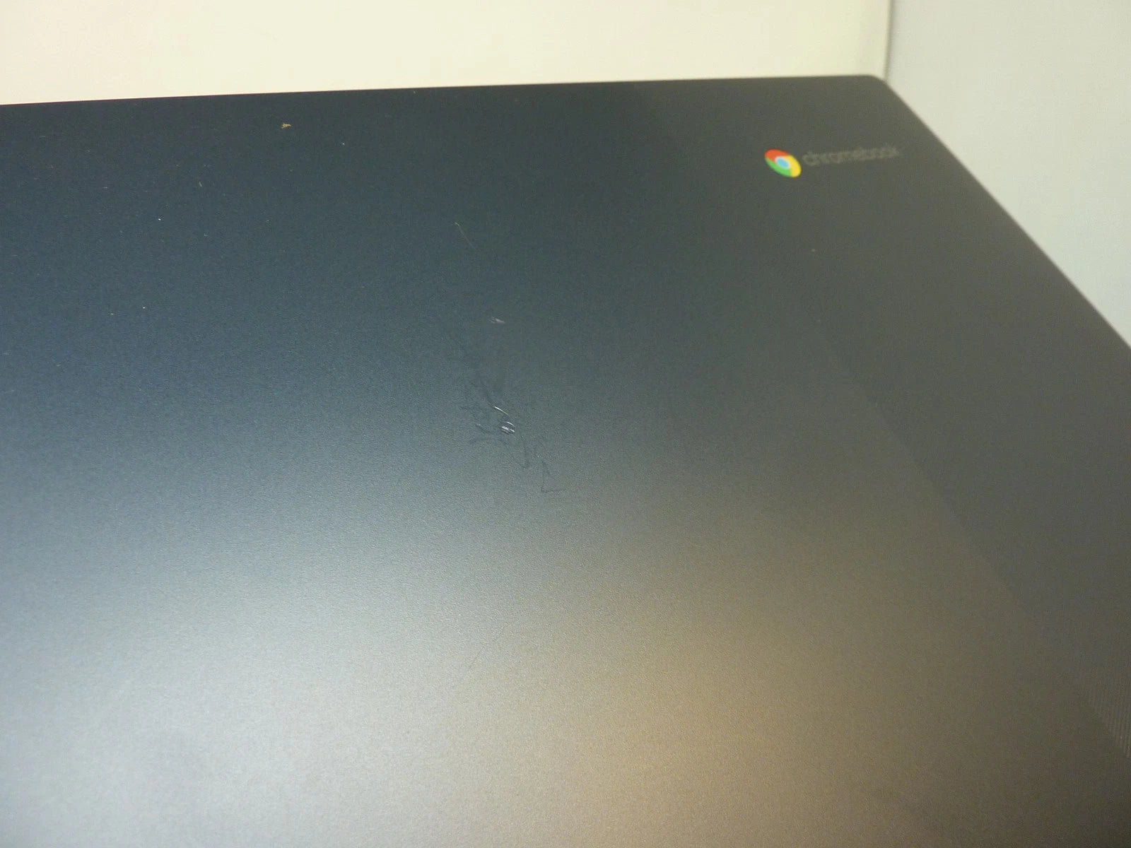 This Chromebook is in very good condition- the glass has some cracks in but all of the screen functions fine (including touch) and there is a scratch on the base & another small set of scratches on the lid, please see photos.